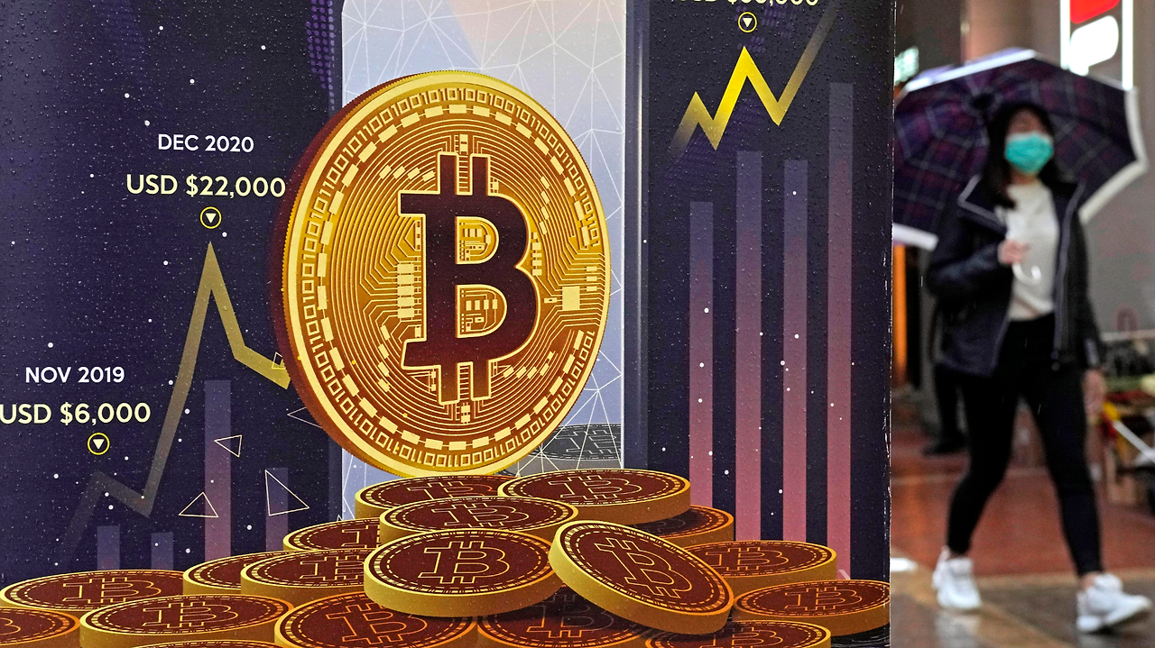2022년 2월 17일 홍콩의 한 거리에 비트코인 암호화폐 광고가 게시되어 있다. (사진/AP)