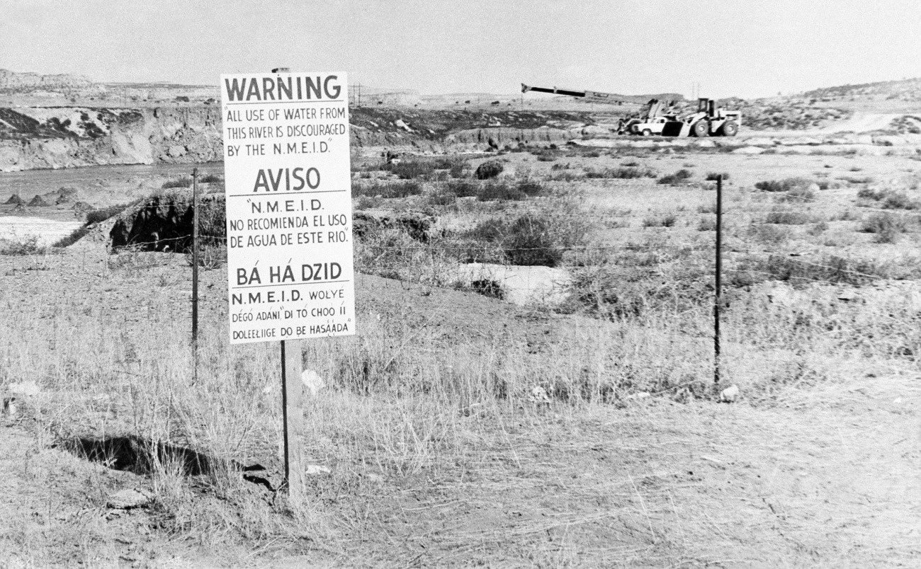 1979년 사진은 미국 뉴멕시코주 나바호족 보호구역에 위치한 우라늄 광산 지역의 정화 작업을 보여줍니다. 당국은 오염된 강물을 피하도록 주민들에게 촉구했습니다. ( 1979년 04월)핵 사슬을 따라 노출
