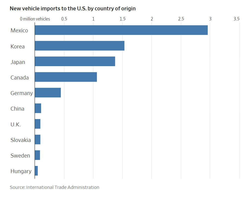 업계 조사 기업인 글로벌데이터에 따르면, 2024년에는 멕시코와 캐나다에서 생산된 약 370만 대의 자동차가 미국으로 수입되어 판매되었습니다.
