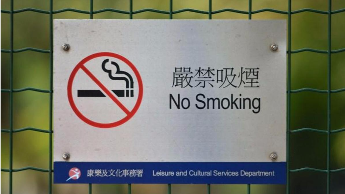 2012년 11월 3일 홍콩의 한 공원 울타리에 금연 표지판이 걸려 있다. (사진/AFP)