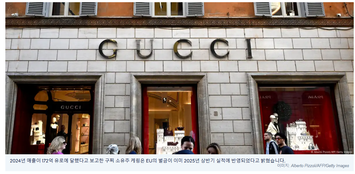2024년에 172억 유로의 수익을 보고한 프랑스의 다국적 기업인 구찌 의 소유주 케링은 EU 조사가 브랜드와 위원회의 긴밀한 협력을 통해 해결되었으며 재정적 벌금은 이미 그룹의 2025년 상반기 실적에 반영되었다고 밝혔습니다.