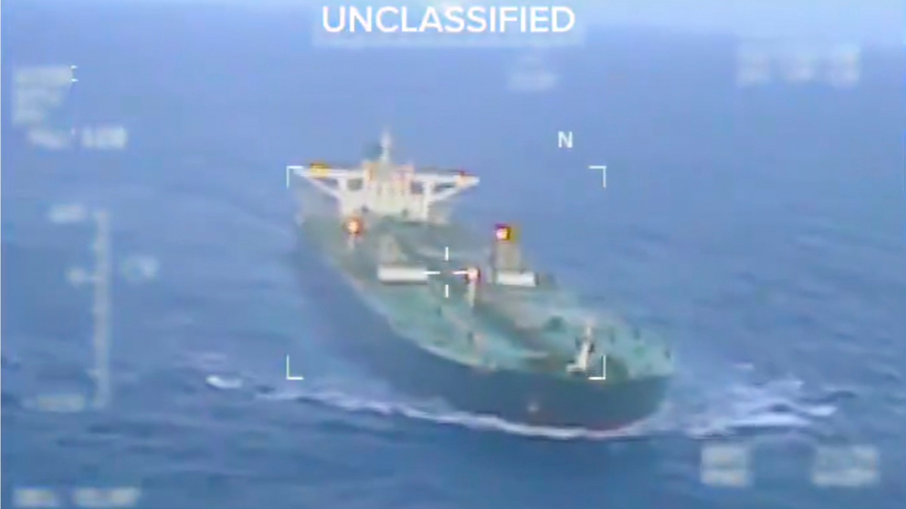 이 사진은 크리스티 노엠 미국 국토안보부 장관의 X 계정에 게시된 영상에서 캡처한 것으로, 2025년 12월 20일 베네수엘라 항에 마지막으로 정박했던 원유 운반선 센추리스호가 미국 해안경비대에 나포되는 모습을 보여준다. (사진 제공: 크리스티 노엠 미국 국토안보부 장관 X 계정 / AFP)
