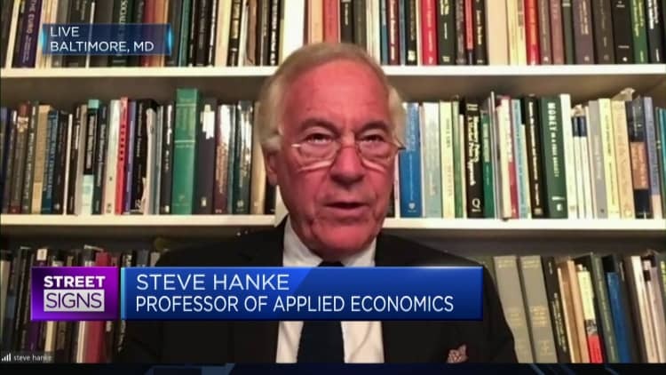 Hanke는 금요일 CNBC의 ” Street Signs Asia ” 와의 인터뷰에서 ”침체 가능성은 50%보다 훨씬 높다고 생각합니다. 약 80%라고 생각합니다. 어쩌면 80%보다 더 높을 수도 있습니다.”라고 말했습니다 .