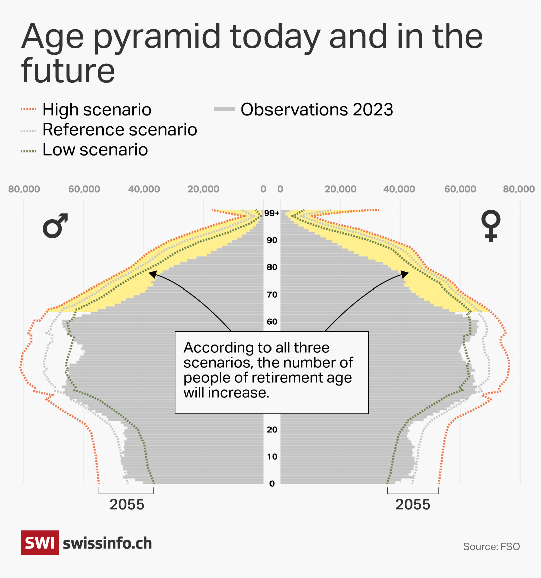 둘째, Budliger는 연령 구조의 변화로 인해 구매자보다 판매자가 훨씬 더 많아질 것으로 예상합니다. 정부의 기준 시나리오에 따르면 65세 이상 인구 비율은 2055년까지 20%에서 25%로 증가할 것으로 예상됩니다.
