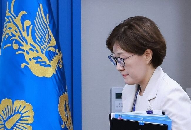 김현지 대통령실 총무비서관이 지난 7월17일 서울 용산 대통령실 청사에서 이재명 대통령 주재로 열린 4차 수석·보좌관 회의에 참석하고 있다. 연합뉴스.