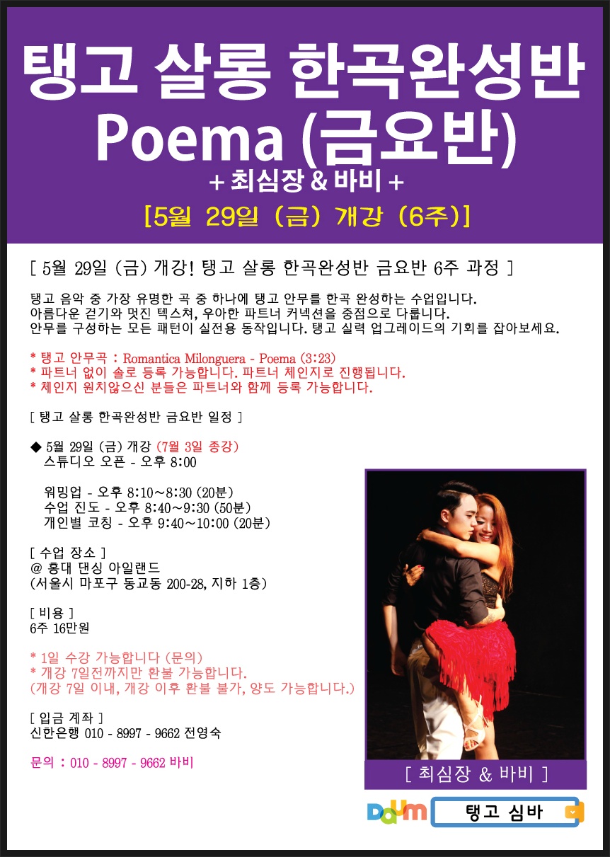 [ 5월 29일 (금) 개강! 탱고 살롱 한곡완성반 금요반 6주 과정 ]