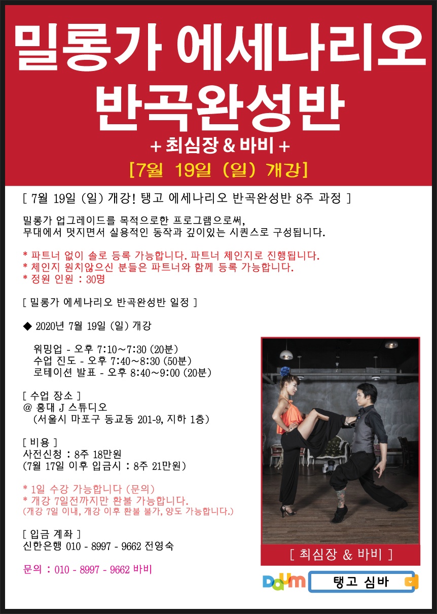 [ 7월 19일 (일) 개강! 밀롱가 에세나리오 반곡완성반 ]