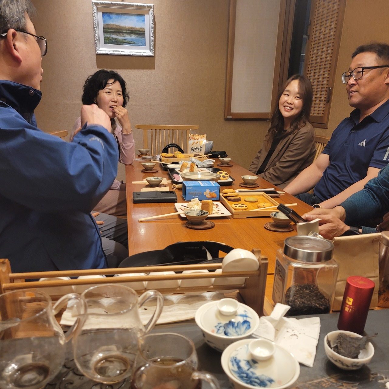 4월 다회에는 상희님, 산수유님, 묵향님과 혜원님이 참석하지 못했고 일곱 분의 다우들이 참석했습니다. 백공님은 중요한 모임이 있어서 잠깐 참석하고 일어서야 했는데 끝까지 자리를 지켜주어서 고마웠습니다. 홍차의 마지막 차였던 금준미, 노차의 향미를 맛보고 일어섰으니 손해 보는 장사는 아니었죠? ㅎㅎ