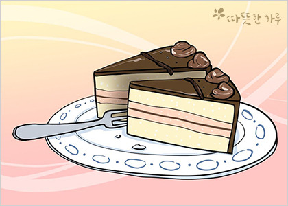 조각 케이크를 주며 말했습니다.