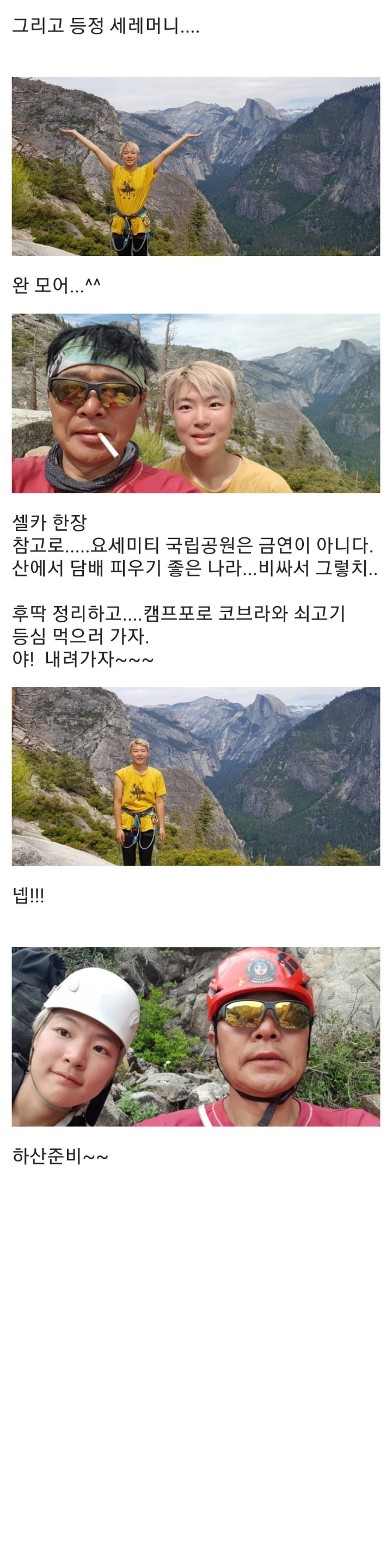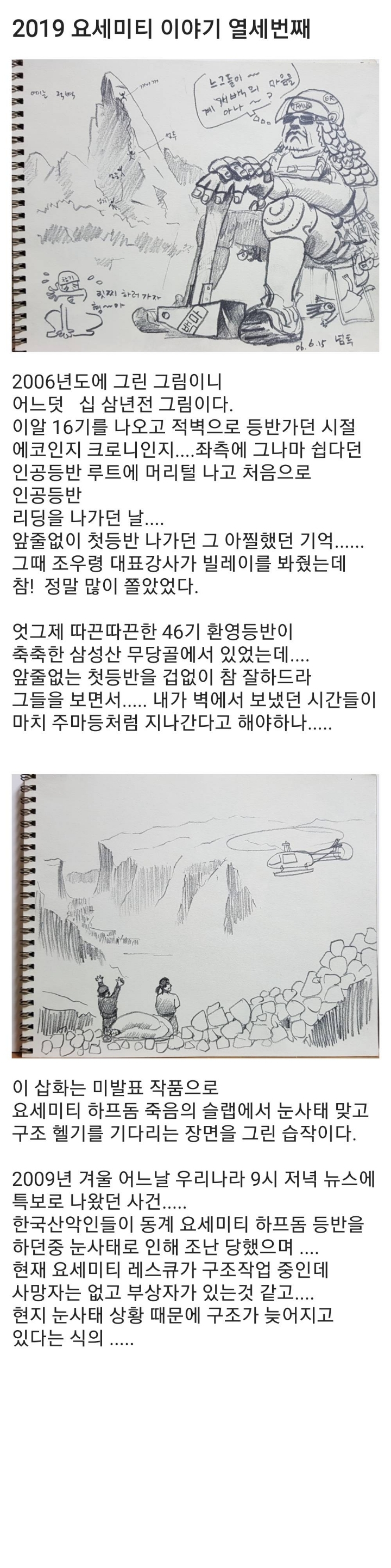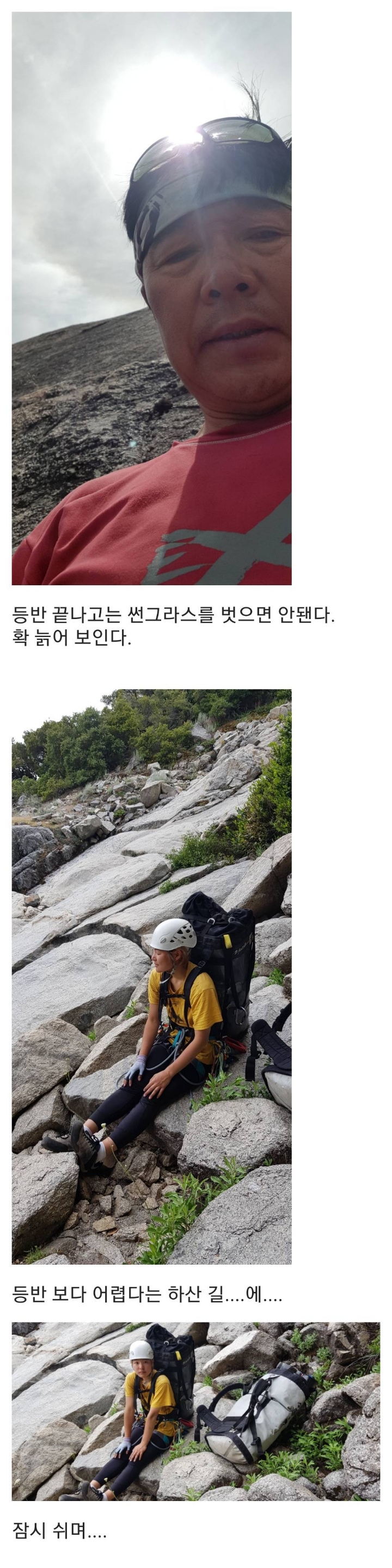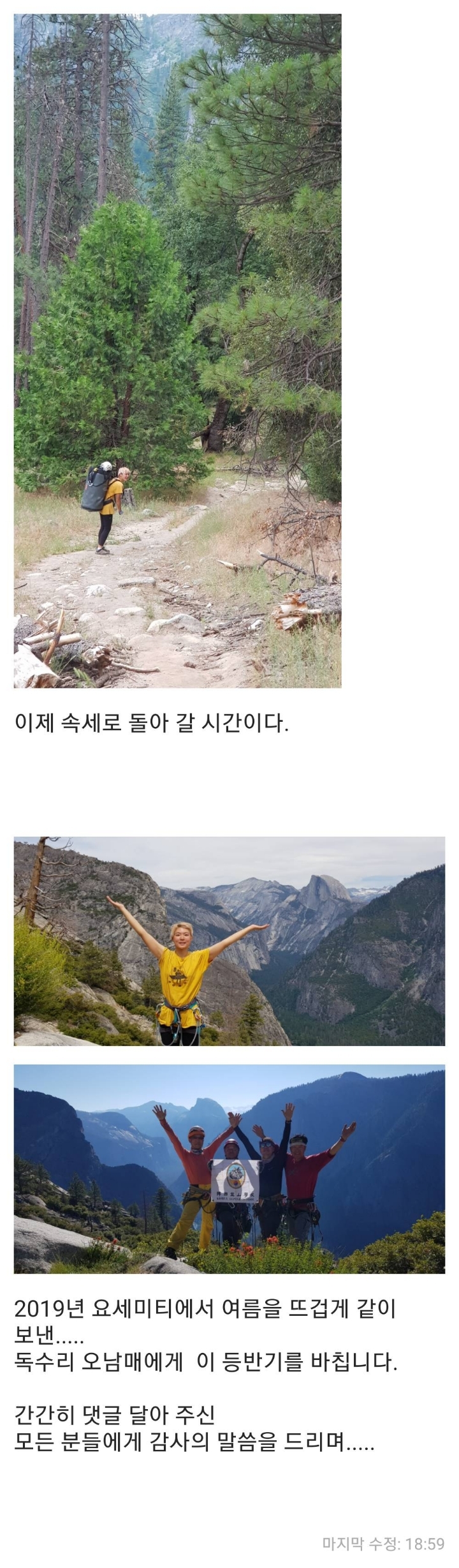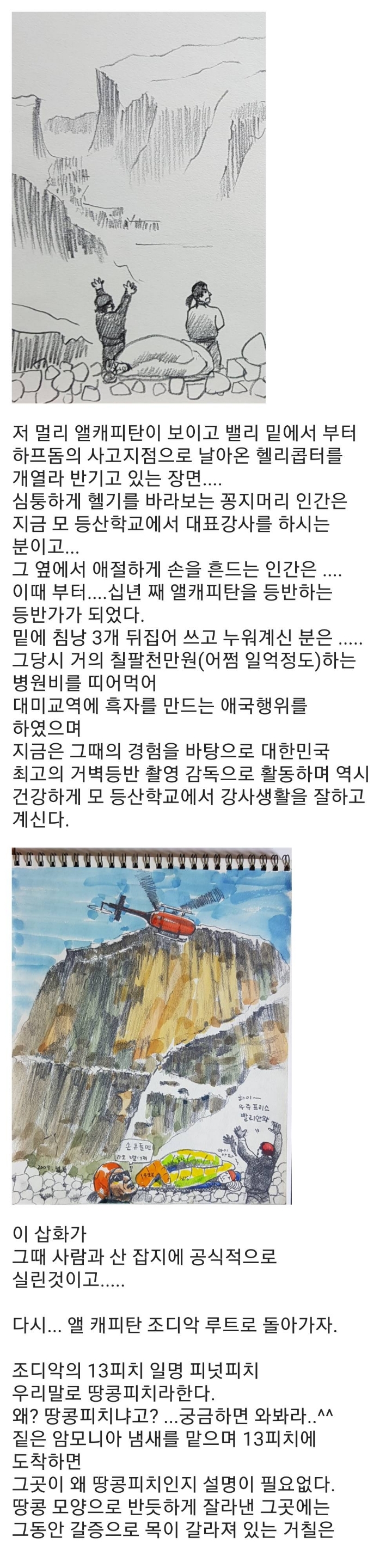 작성자이기성 작성시간 19.11.24 무슨 인연으로 만나고, 엘캡에 건 한 줄에 매달리고, 그 고난과 고뇌를 함께 그리워 하고.