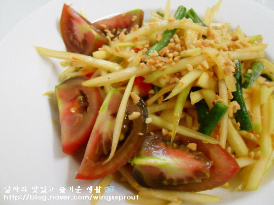 쏨땀은 그린파파야를 이용해서 만든 태국식 샐러드예요.