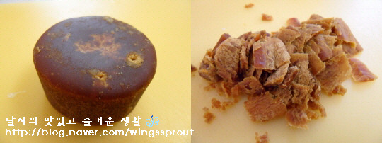 팜슈가는 칼로 긁어서 다져 놓았어요. (설탕으로 하실 땐, 필요없는 과정이죠..^^)