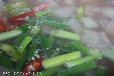 청,홍청양고추,대파를 넣고 다진마늘 넣고