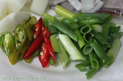 색감도 생각해서홍청양고추도 반개 어슷썰고