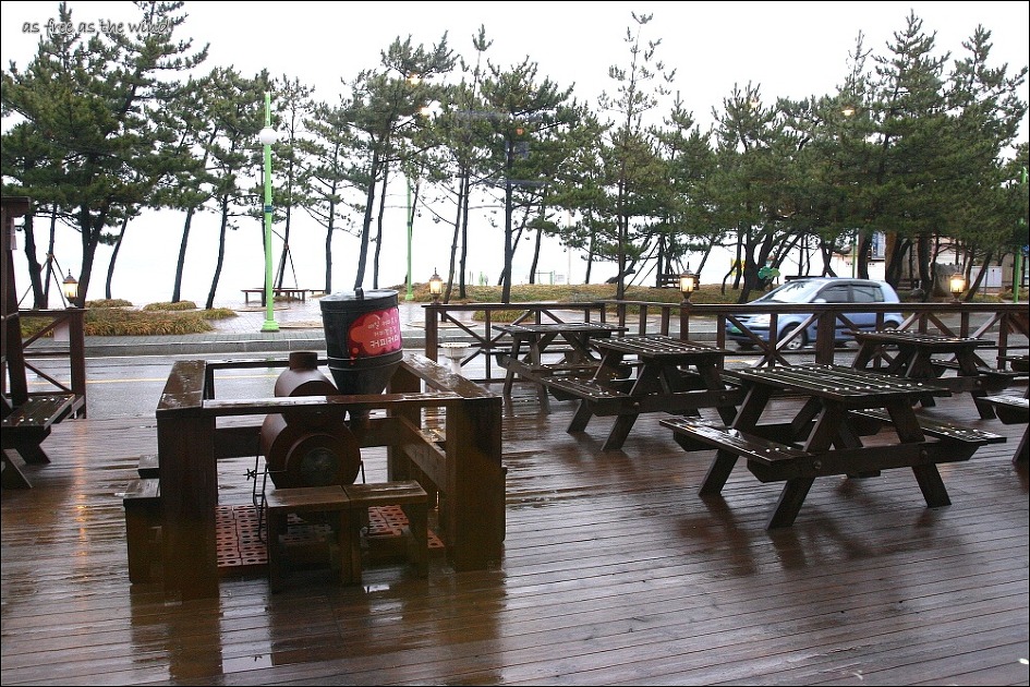 모든 까페가 바다를 보고 있어서 커피한잔 마시면서 비오는 바다에 흠뻑 빠지는것도