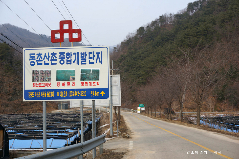 처녀고개를 넘어 1km 다면 오른쪽으로 동촌마을 입구가 나옵니다.