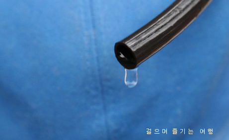 이렇게 구멍에 관을 넣어 물을 받습니다.