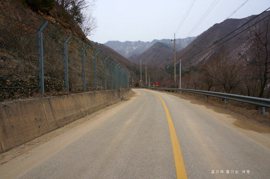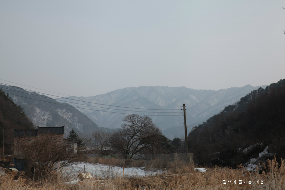 발목까지 빠지는 잔설이 남은 평화의댐 마을의