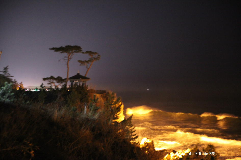 절벽에 부딪치는 파도 소리와 조명에 비춰진 모습이 환상으로 다가 옵니다.