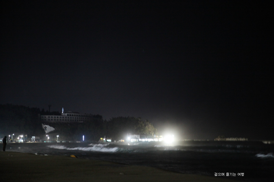 철썩이는 밤바다를 산책하며 여유로움을 즐깁니다.