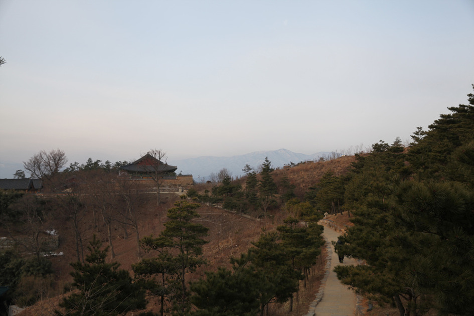 원통보전 가까운 곳에서 바라다 본