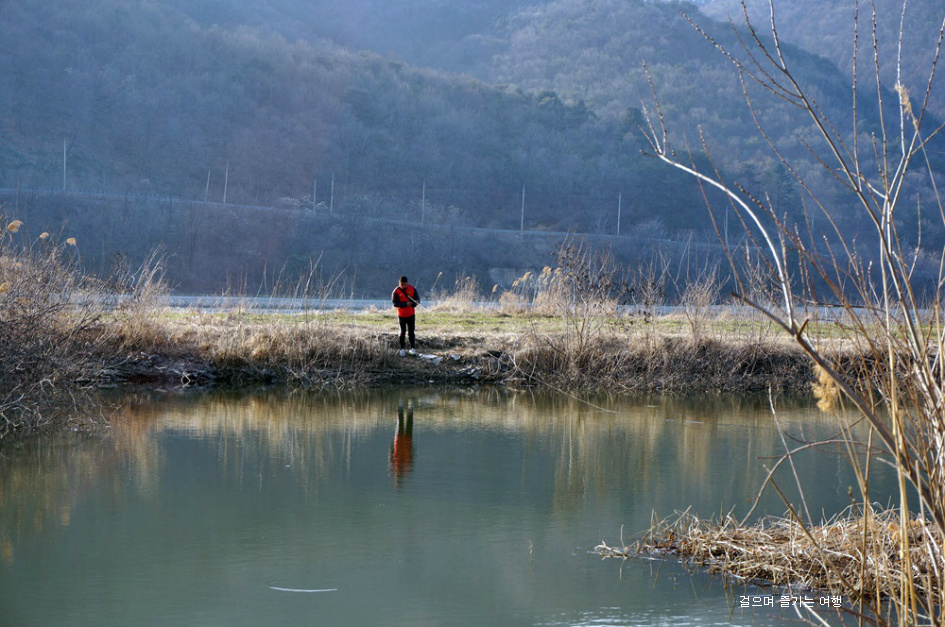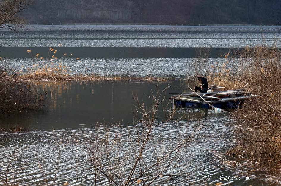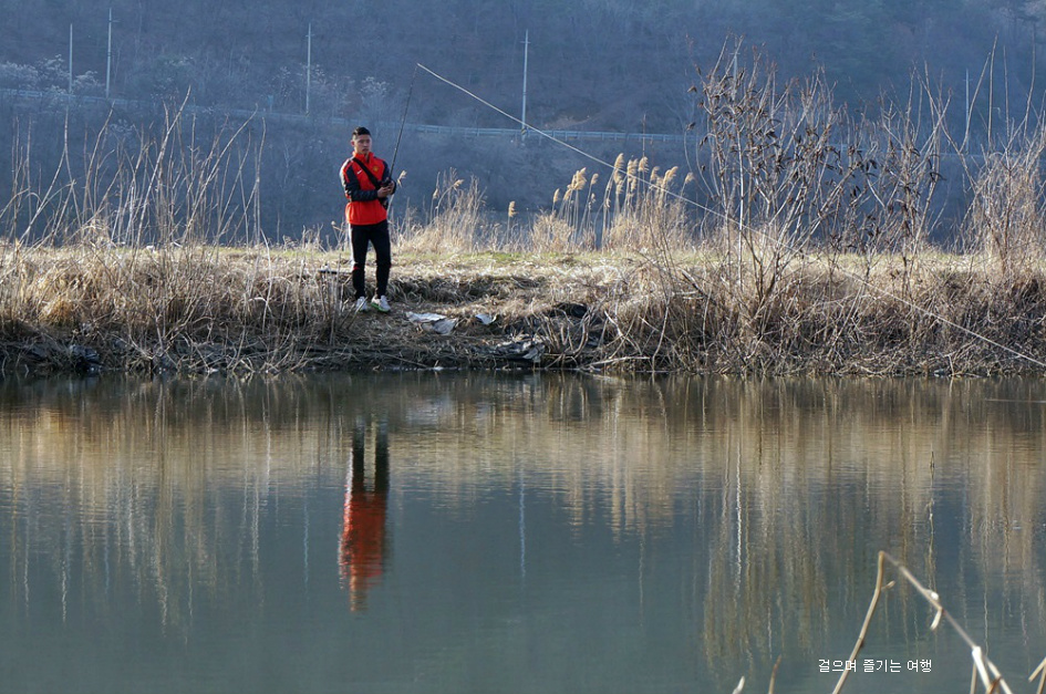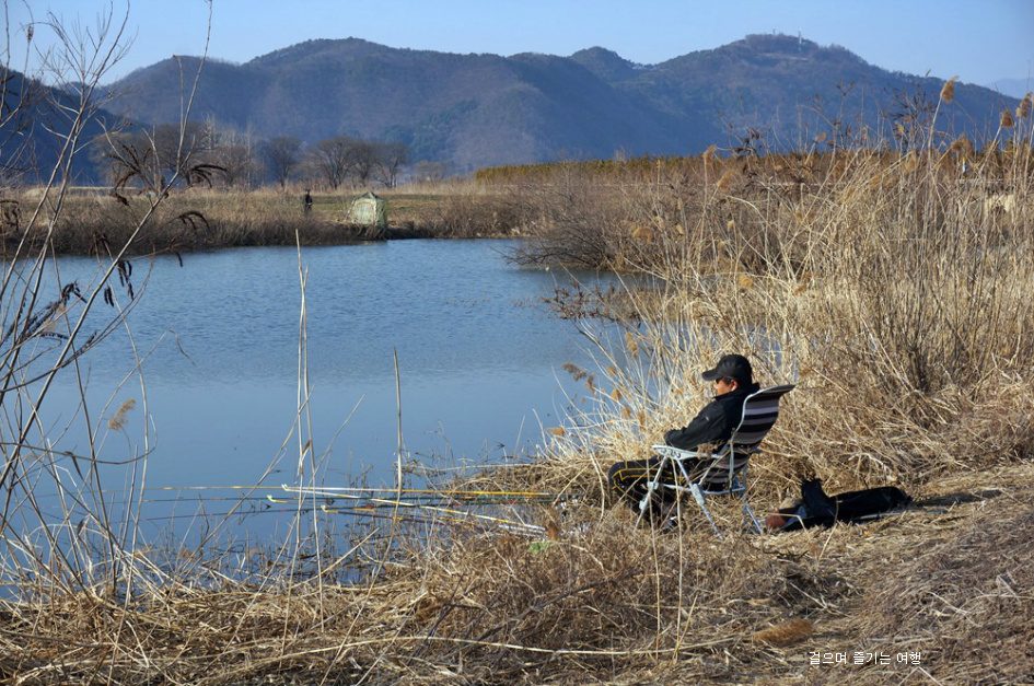 편안하게 앉아 낚시대를 즐기는 사람은 양지바른곳에 자리를 잡았네요