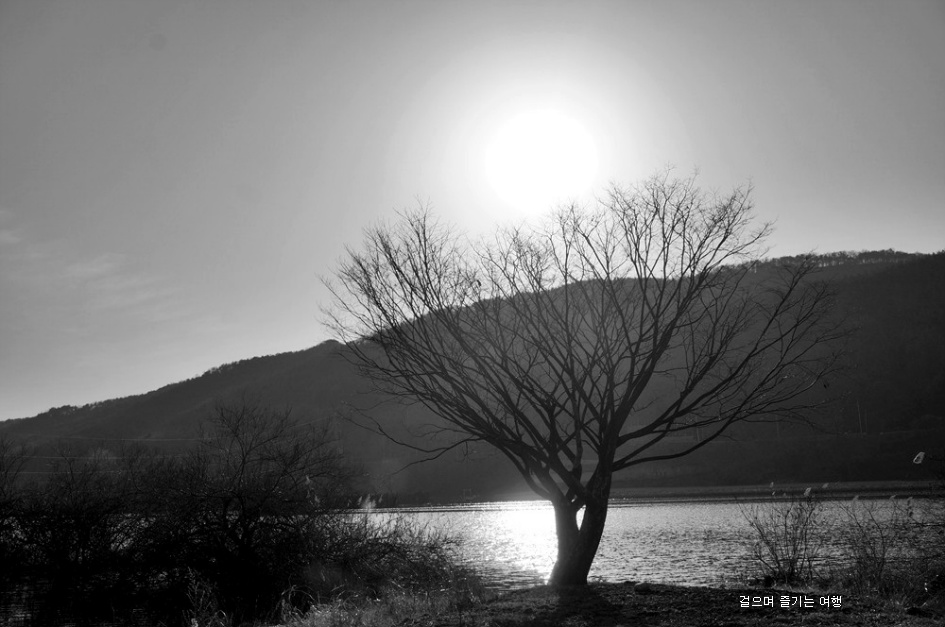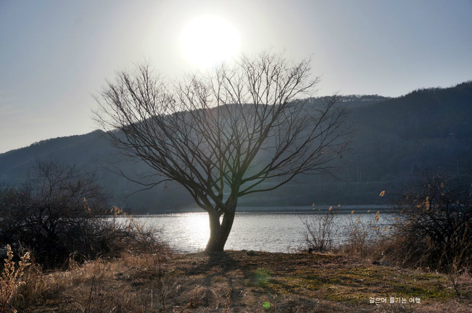 오후 햇살을 받은 물가 나무에 내려 앉은 햇살이 정겹습니다.