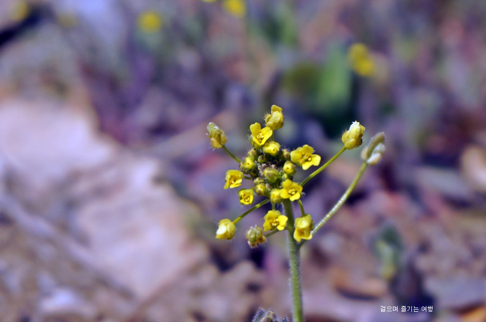 작고 앙증 앙증 맞은 꽃다지가 양지 바른 담장밑에 노란 꽃을 활짝 피웠습니다.