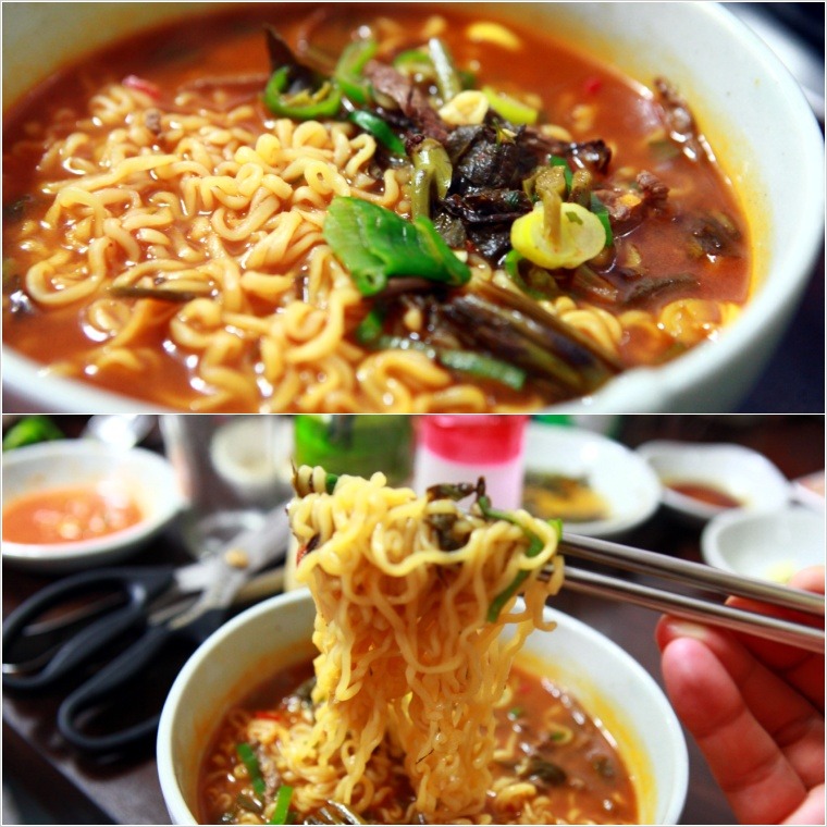 아시는 분들께만 드린다는 이곳만의 별미 옻라면~~~대한민국 대표라면 신라면에 옻나무를 더한 옻라면... 국물맛이 대박입니다~ ^^