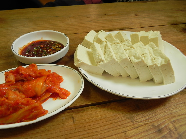 두부는 입자가 약간 굵은 듯 하면서도 고소하고 맛있습니다. 집에서 만든 두부는 왠지 깊은 맛이 있죠. 그냥 먹어도 좋은 맛. 이 집 두부는 그냥 먹는 것이 더 맛있었습니다. 함께 나온 김치와 먹어보니 김치가 약간 달달하고 시어서 두부맛과는 잘 어울리지 않더라구요.