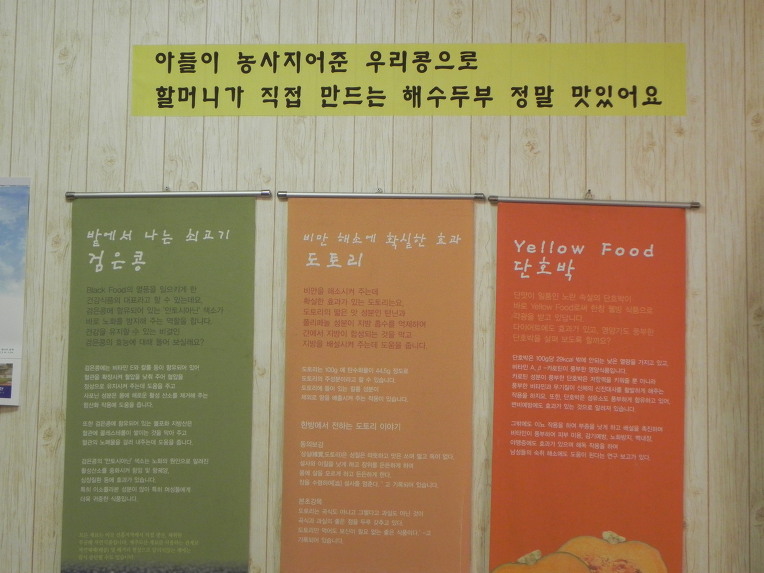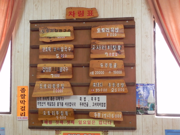 메뉴판 확인하시구요. 우리는 검정콩 콩국수와 도토리 묵밥, 그리고 두부 한접시를 주문했습니다.