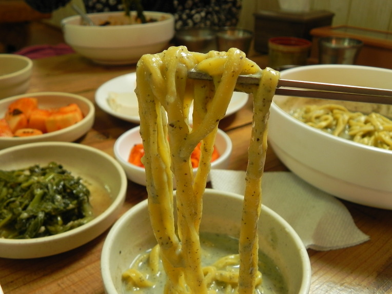 검정콩 콩국수는 이렇게 나오구요. 면이 노란색인 것이 특이합니다. 단호박을 넣어서 그런 것일 겁니다.