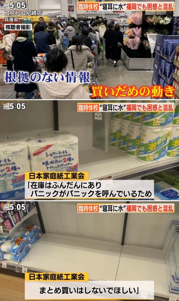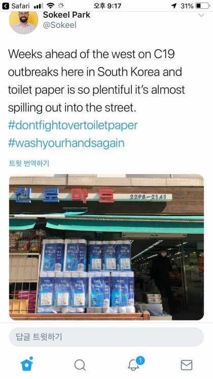 호주 일본 미국등 화장지 대란 일어나서