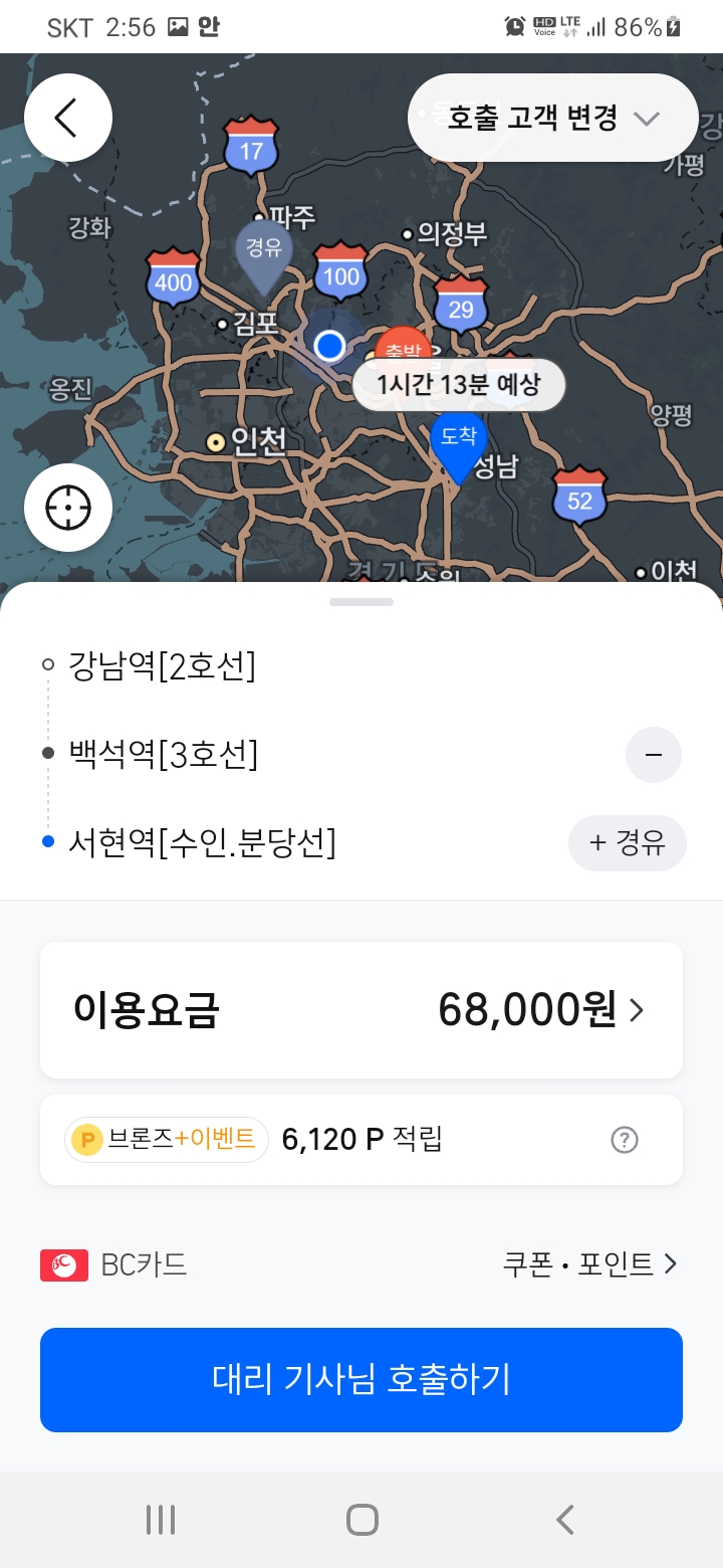 근데 강남역 ㅡ백석역ㅡ서현역이 68?? ㅡㅡ.