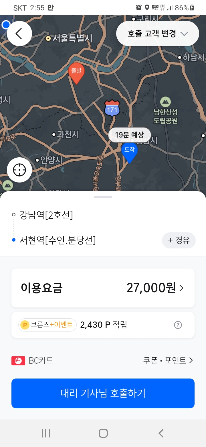 어제 티맵으로 미사에서 마석 31에