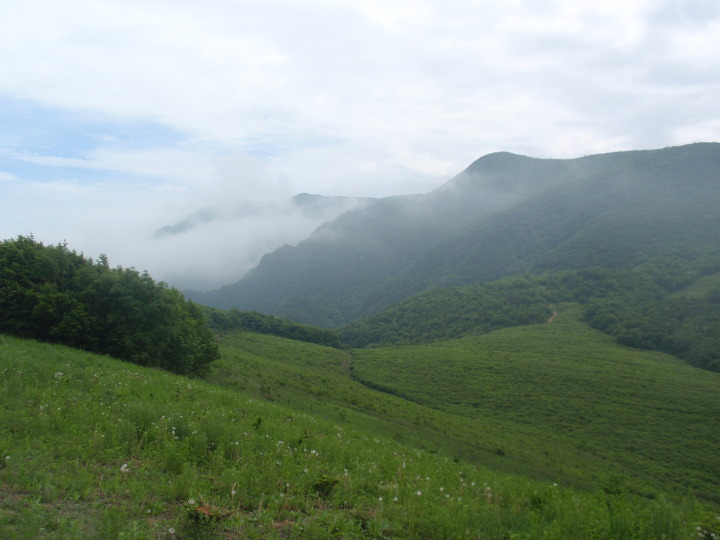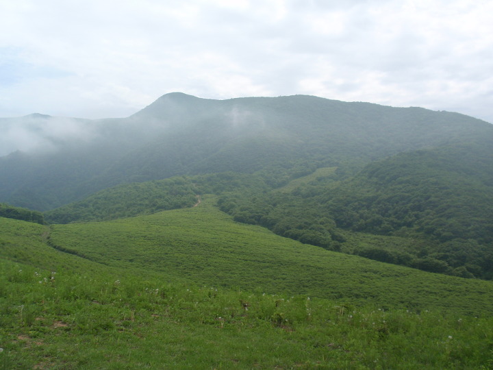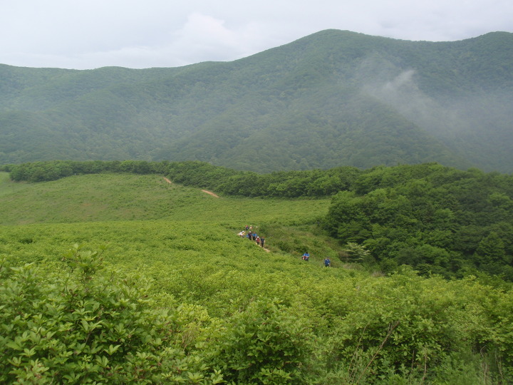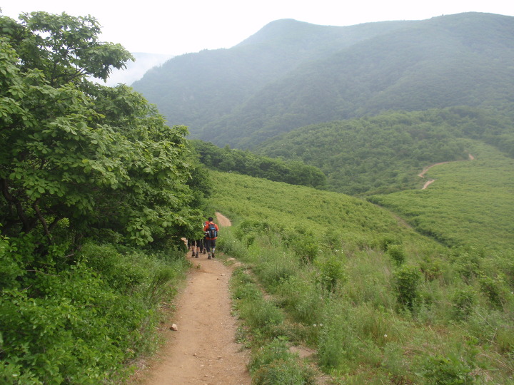 진부 휴게소 해발900미터 부터 오르기 시작해 비교적 수월합니다 이런너른 푸른초원을 걸은다음 노인봉을 향해 오릅니다