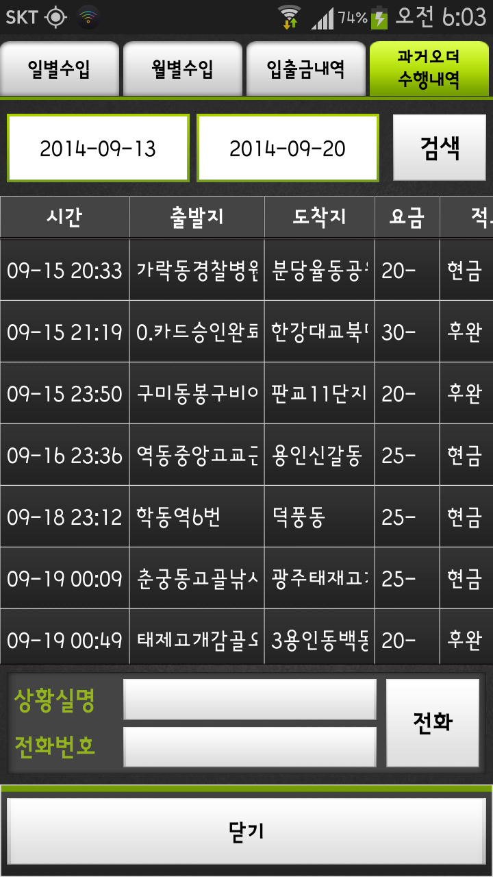 예를 들어 A사오더를 (가)라는 기사님 금액과