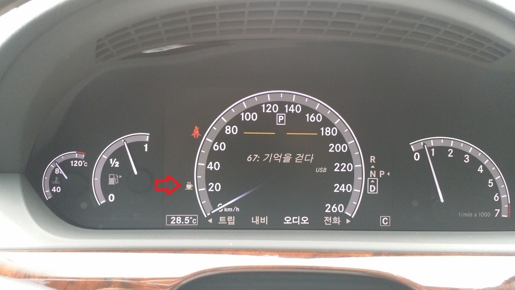 빨간색 화살표가 가르키는 커피잔모양의 경고등은 무슨 뜻일까요??