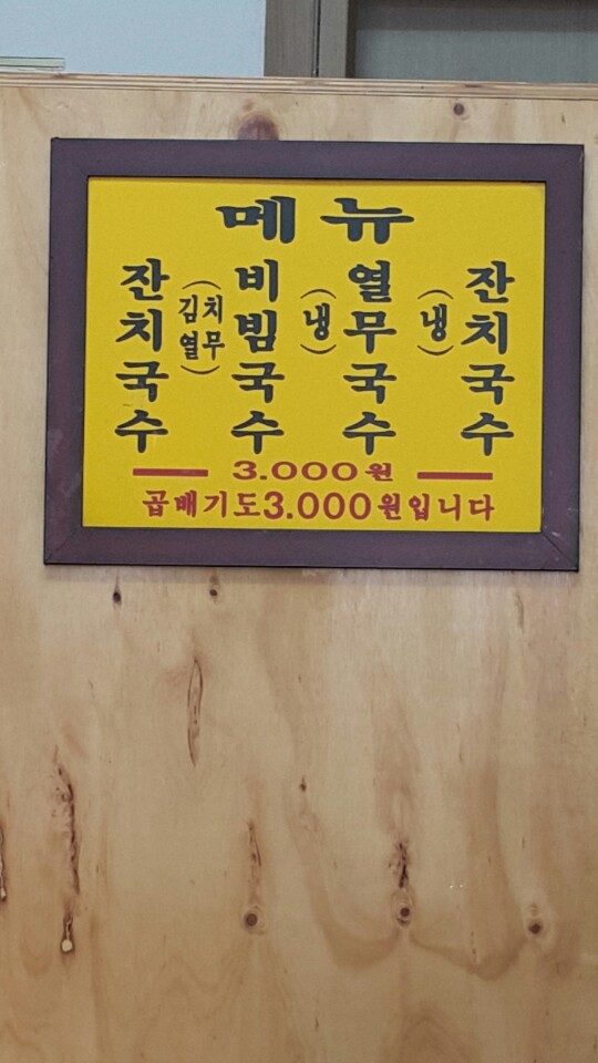 한 15년전부터 시장끼 맞을때마다 찾는 국수집입니다 원래 자리는 그 유명한 효창공앞6출구에 2평남짓한 작은가게에서 손님이끊이질 않는다해서 여러 방송사에서 촬영오던 그집입니다 장사잘된다는 유명세에 건물주 딸내미가 테이크아웃커피점한다고 나가라했다네요 젠트리피게이션 당해서 요자리로 이사오셨네요 이집장점은 곱배기나 보통이나 3천원가격동일입니다 인상좋으신 아주머니가 사람봐가면서 양을 많이주시네요 쌀쌀해지는 요즘 시장끼 드실때 따뜻한 잔치국수 한그릇 하세요 맛도 좋습니다 ^^