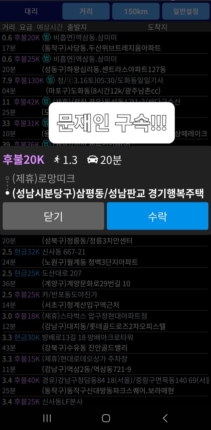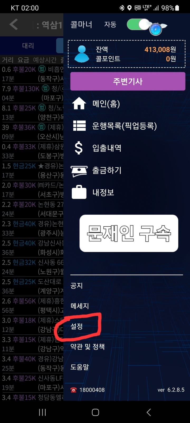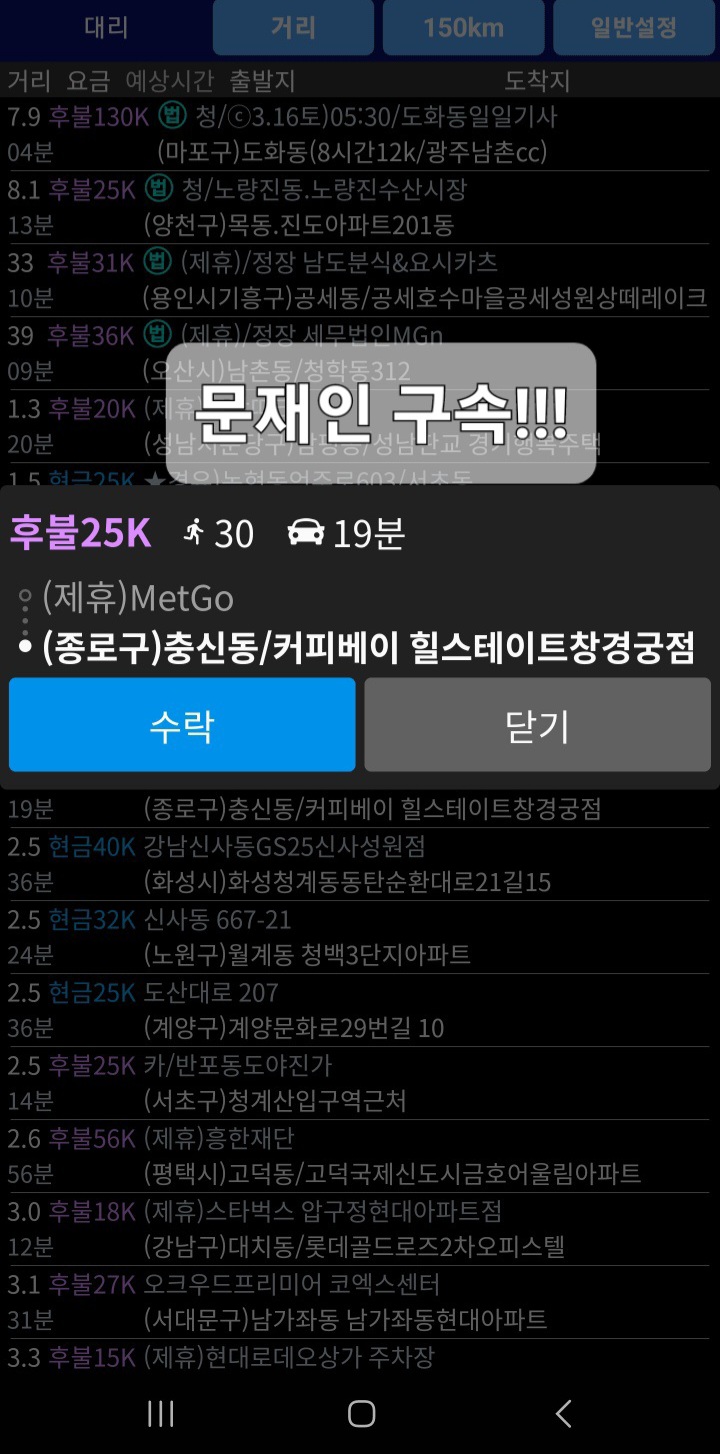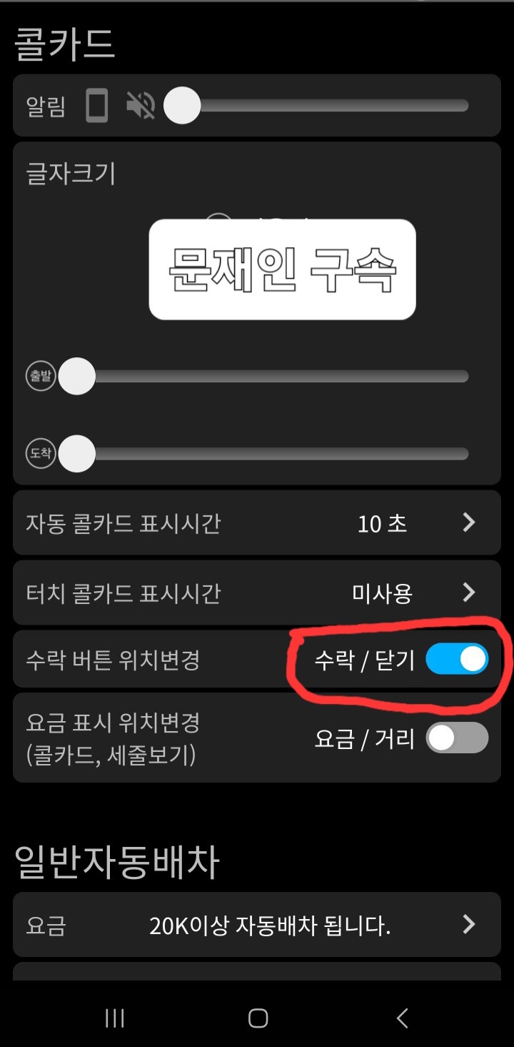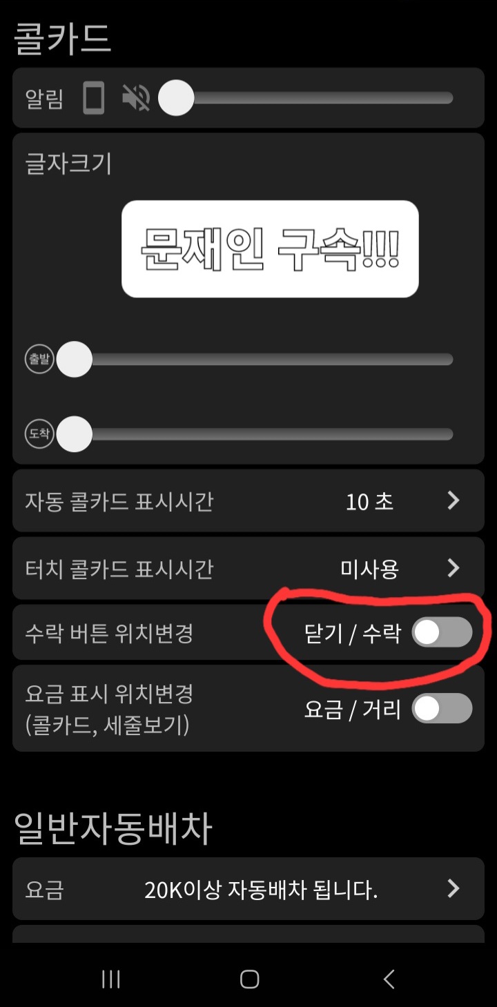 2. 콜마너의 설정에 들어갔을 때,, 닫기/수락 위치 버튼이 아래와 같이 되어 있으면, 콜카드에서 닫기 버튼은 왼쪽, 수락 버튼은 우측에 놓이게 된다.