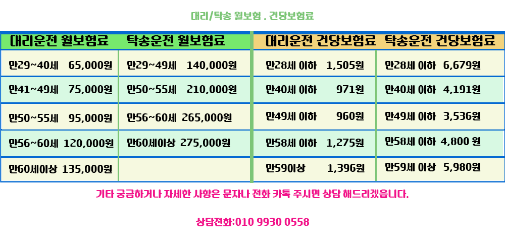 ■대리/탁송 월보험 일일차감 가능 합니다.