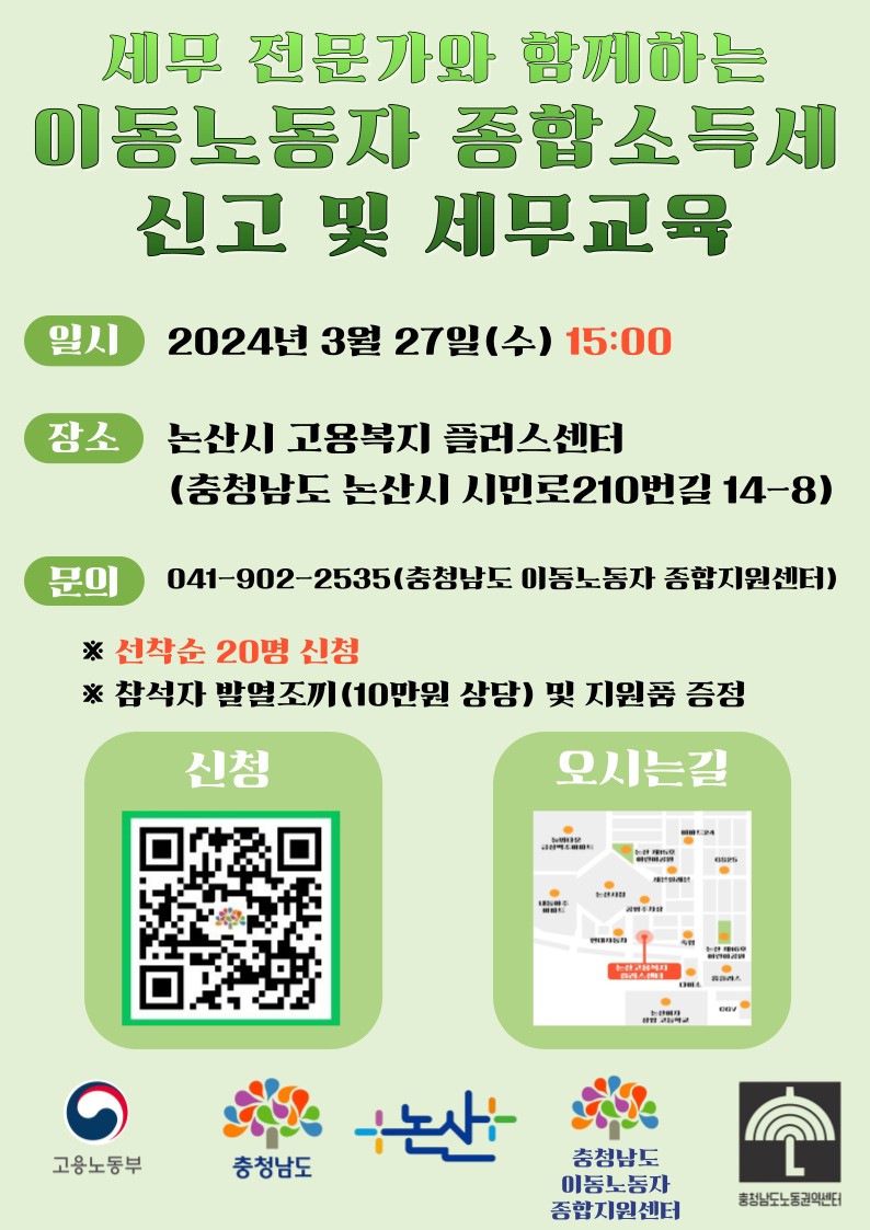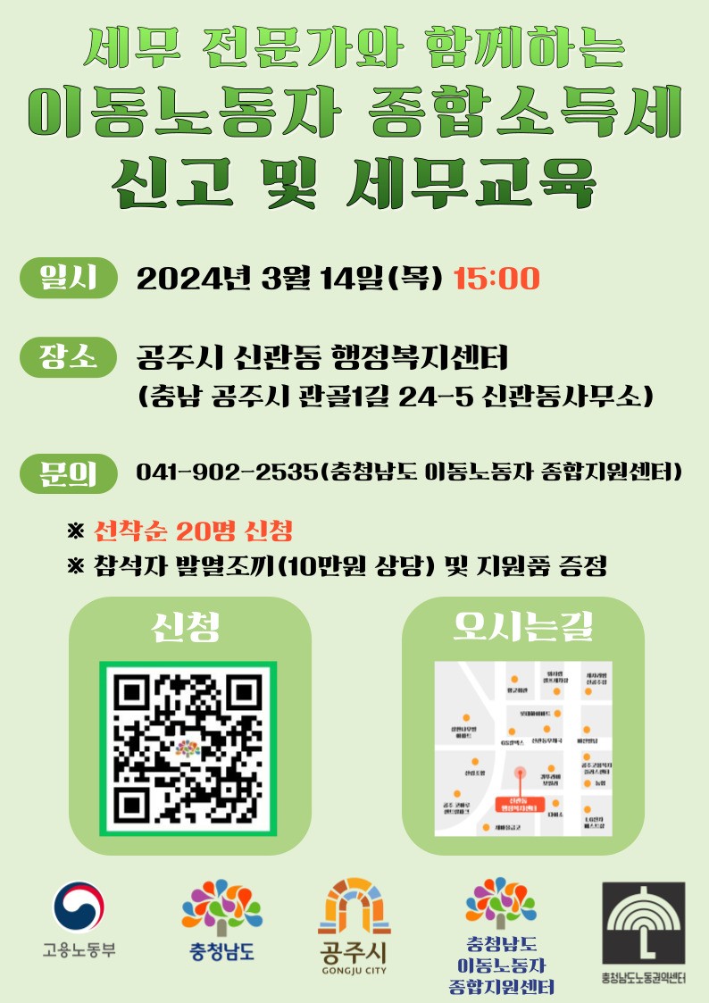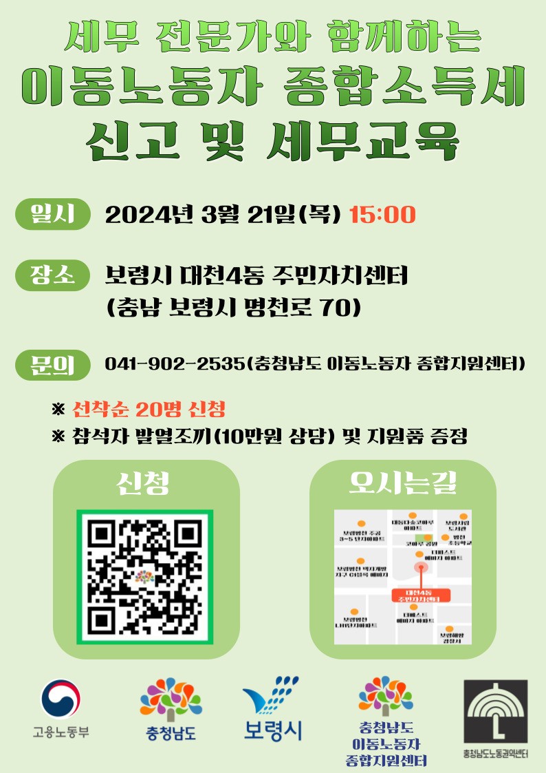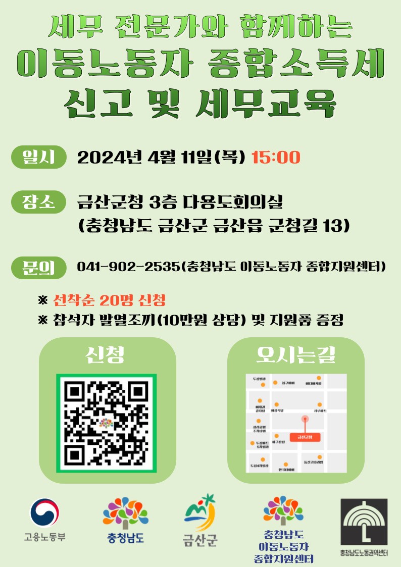 이동노동자를 위한 종합소득세 신고 세무교육을 실시 할 예정입니다.