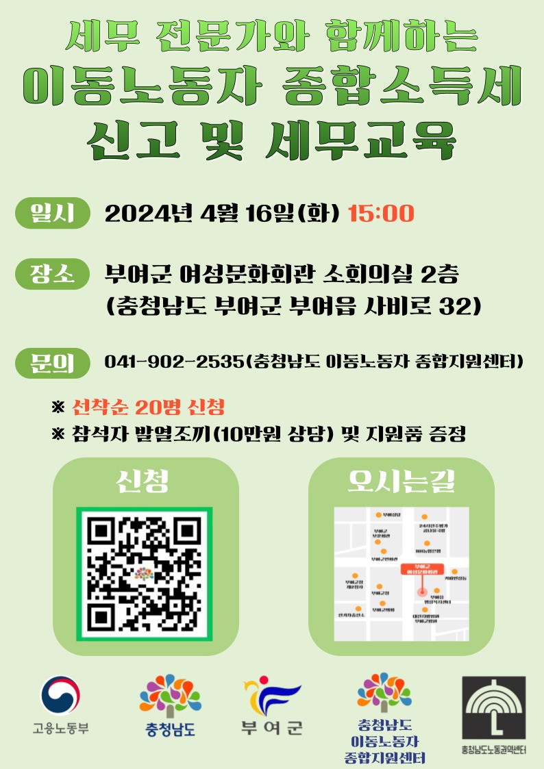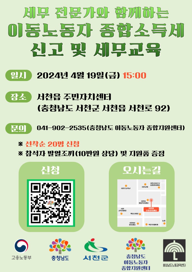 이동노동자를 위한 종합소득세 신고 세무교육을 실시 할 예정입니다.