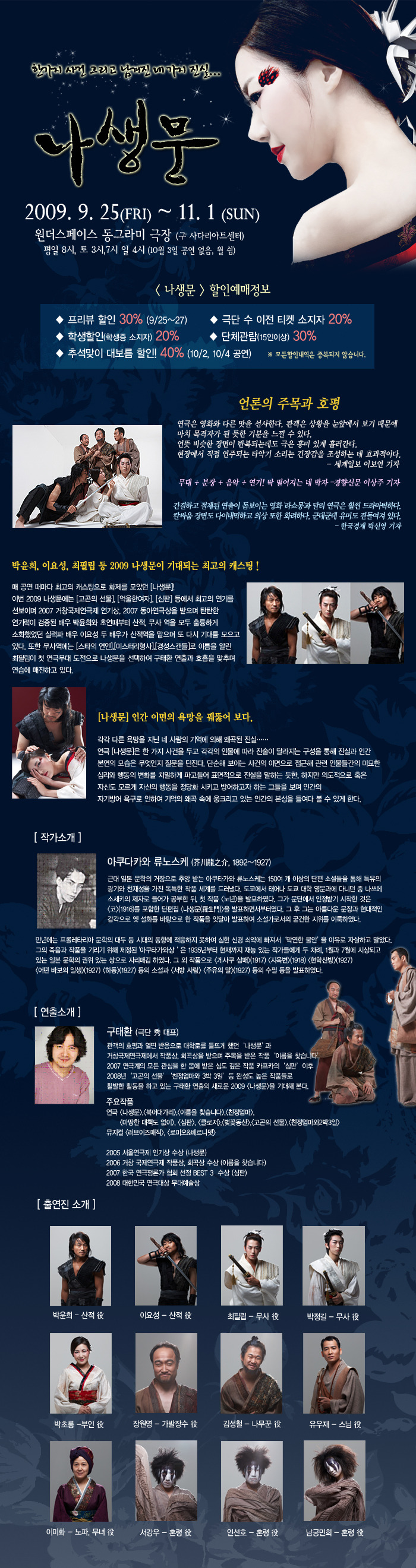 [스크랩] [타지역공연]극단 수의 2009<나생문>, 그 화려한 막을 열다! 프리뷰할인 30% (9/25~27) 작성자놀자|작성시간09.09.16|조회수22 목록 댓글 0 글자크기 작게가 글자크기 크게가 다음검색 스크랩 원문 : 연극사랑사람사랑 현재 게시글 추가 기능 열기 북마크 공유하기 신고 센터로 신고 댓글 댓글 0 댓글쓰기 답글쓰기 댓글 리스트