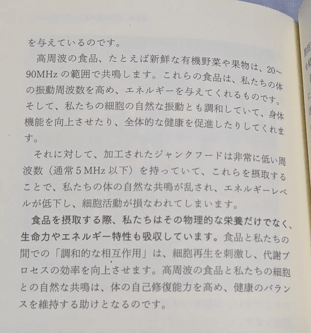 에너지가 완전히 없어지고 있다고 하는 고주파한 식품일수록 생명력·파동이 높고, 우리의 파동을 올리는 데 도움이 된다고 합니다.