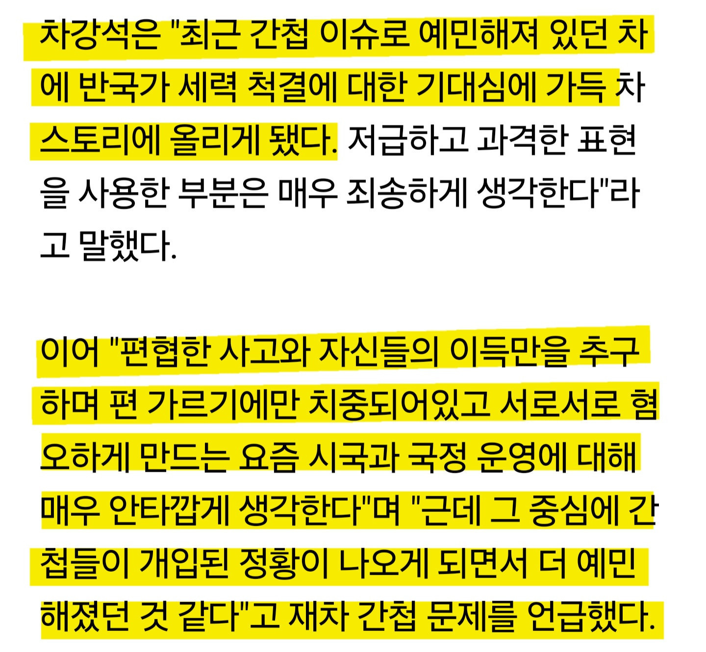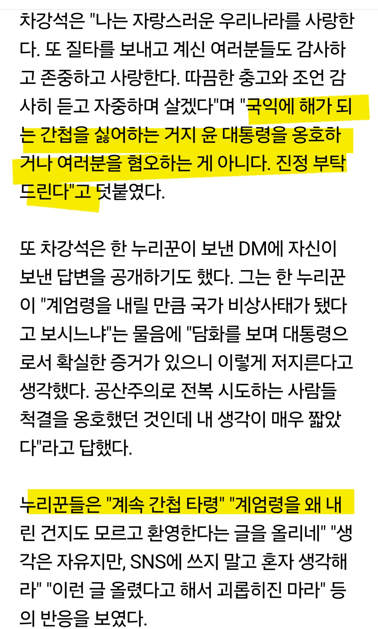 "계엄 환영" 배우 차강석, 사과문에도 간첩 타령 작성자얼굴지르기|작성시간24.12.05|조회수2 목록 댓글 0 글자크기 작게가 글자크기 크게가 좌빠리들 징글징글하다 다음검색 현재 게시글 추가 기능 열기 북마크 공유하기 신고 센터로 신고 댓글 댓글 0 댓글쓰기 답글쓰기 댓글 리스트