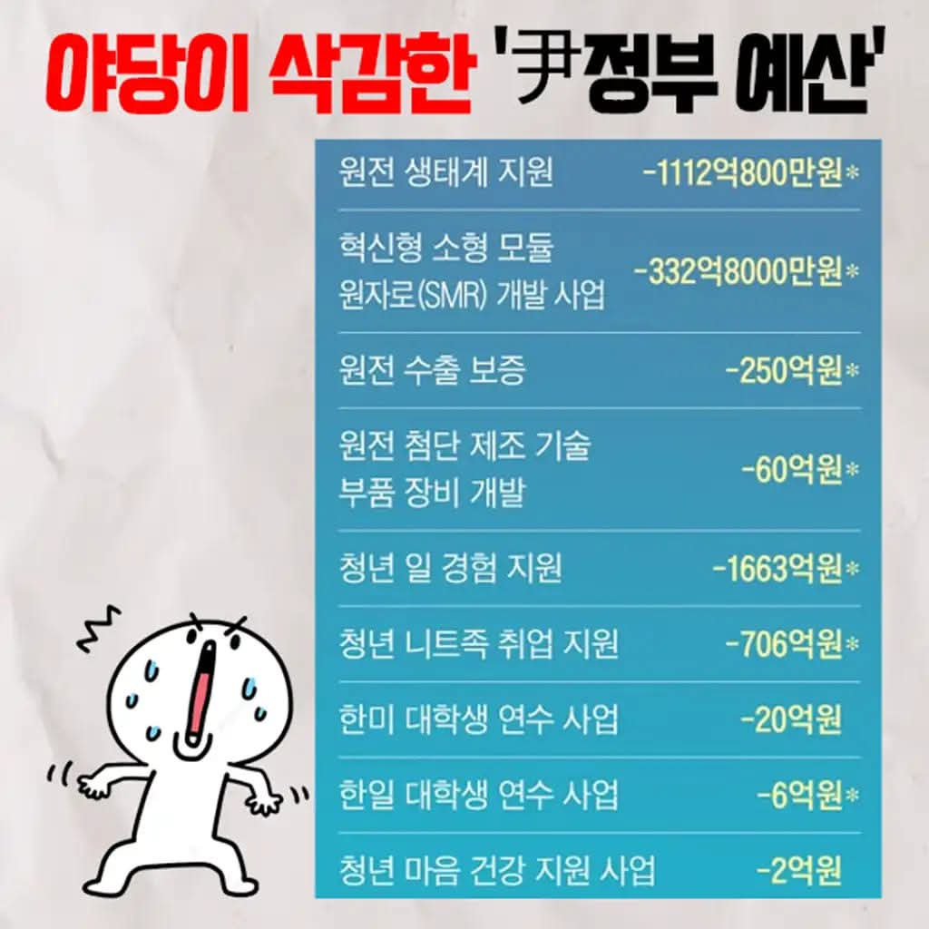 원전 생태계 지원비용 1,112억원, 첨단 제조기술 개발비, 청년 일자리 지원금, 동해가스 등 모조리 칼질