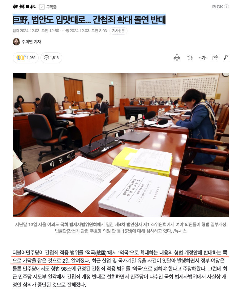 중국 공산당원이 우리 군사시설을 촬영하고 간첩들이 날뛰는 상황에서도 간첩죄 개정을 반대