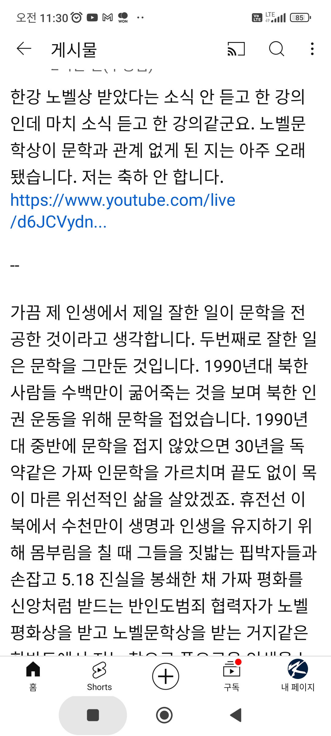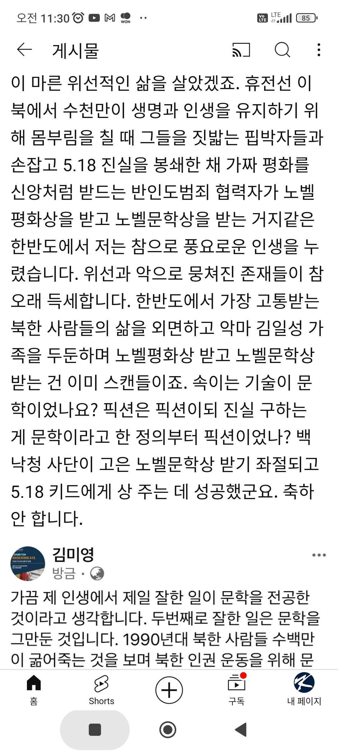 노벨 개병신상 됐네 작성자정권지르기|작성시간24.10.11|조회수6 목록 댓글 0 글자크기 작게가 글자크기 크게가 한국 역사에 대한 제대로 된 숙려도 없이, 픽션 갖고 실제역사랑 혼동 저지랄. 더러운 상이 되어 버렸어 저따위 상이면 에라이 다음검색 현재 게시글 추가 기능 열기 북마크 공유하기 신고 센터로 신고 댓글 댓글 0 댓글쓰기 답글쓰기 댓글 리스트