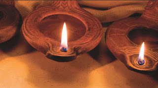 '켜 놓고'로 번역된 '카이오메노이'(kaiomenoi; burnning)는 '불을 켜다'는 뜻의 동사 '카이오'(kaio)의 현재 분사 수동태로서 '계속적으로 불이 켜 있는 상태'를 가리킨다.